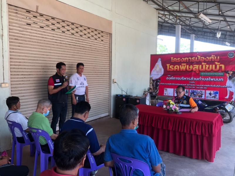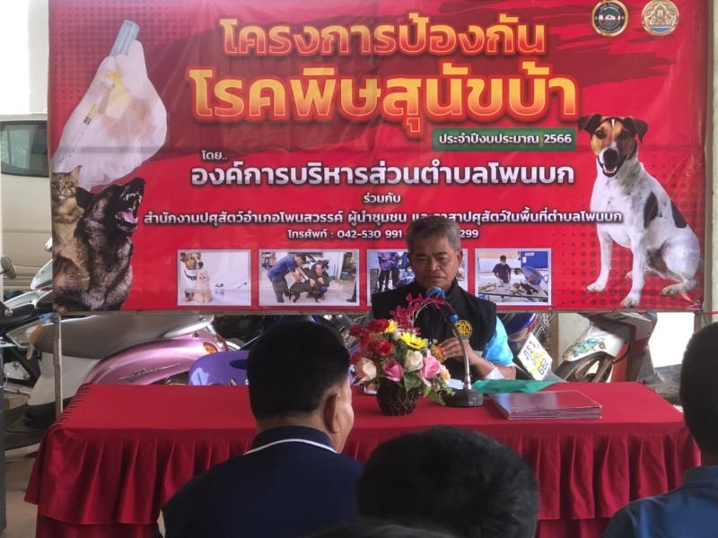 โครงการป้องกันโรคพิษสุนัขบ้า ประจำปีงบประมาณ 2566 โดยมี สำนักงานปศุสัตว์ อำเภอโพนสวรรค์ ผู้นำชุมชน และอาสาปศุสัตว์ในพื้นที่ตำบลโพนบกเข้าร่วมโครงการ