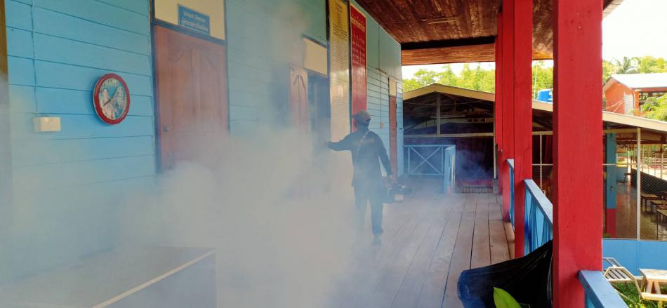 องค์การบริหารส่วนตำบลโพนบก ออกพ่นหมอกควันตามโรงเรียน และตามศูนย์พัฒนาเด็กเล็กของตำบลโพนบก เพื่อลดการระบาดของโรคไข้เลือดออก