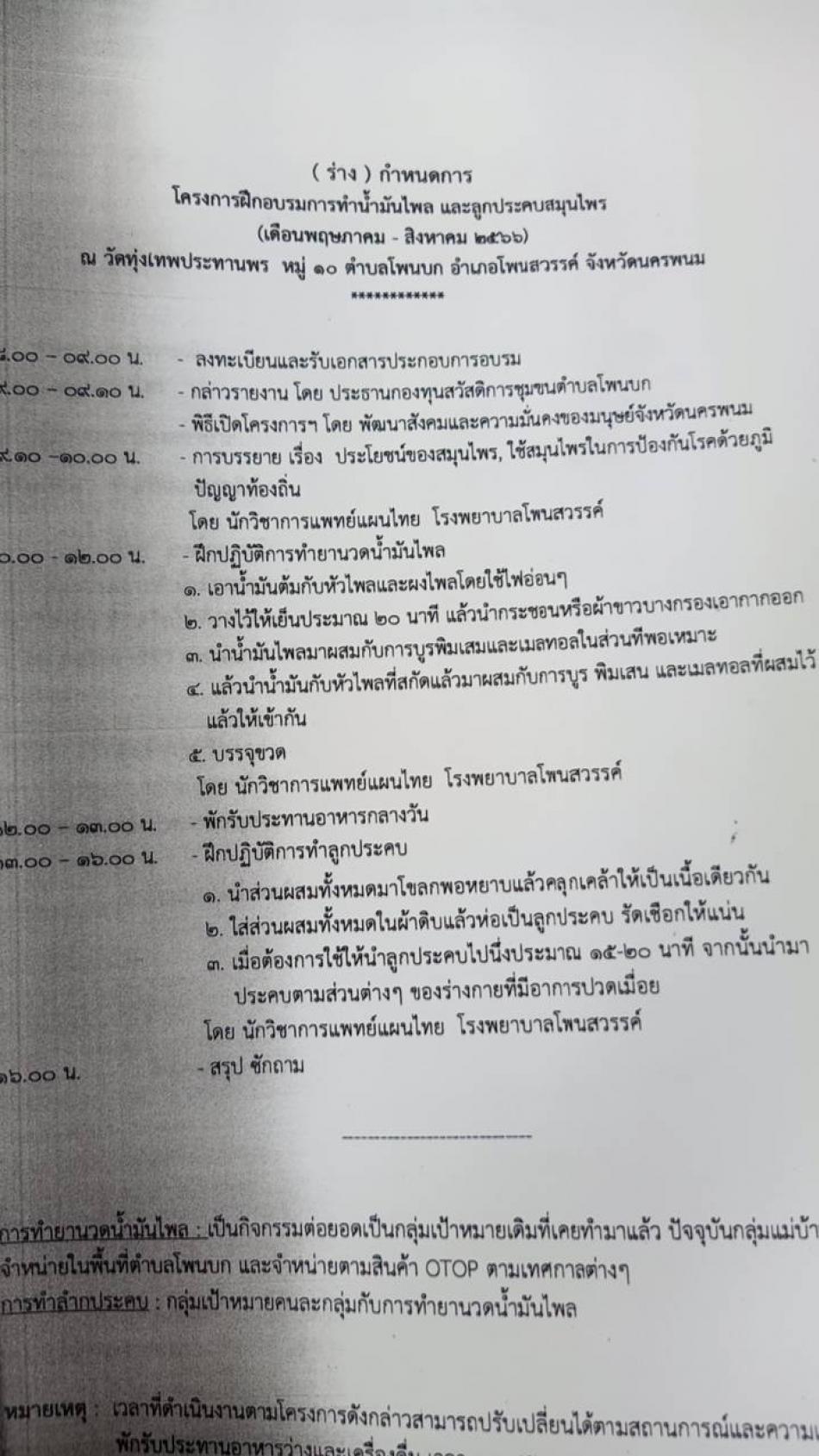 โครงการฝึกอบรมการทำน้ำมันไพล และลูกประคบสมุนไพร [2 มิถุนายน 2566]