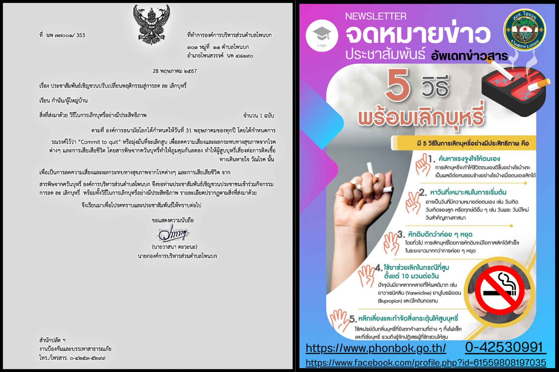 ชื่อเรื่อง : ประชาสัมพันธ์เชิญชวนปรับเปลี่ยนพฤติกรรมสู่การลด ละ เลิก บุหรี่