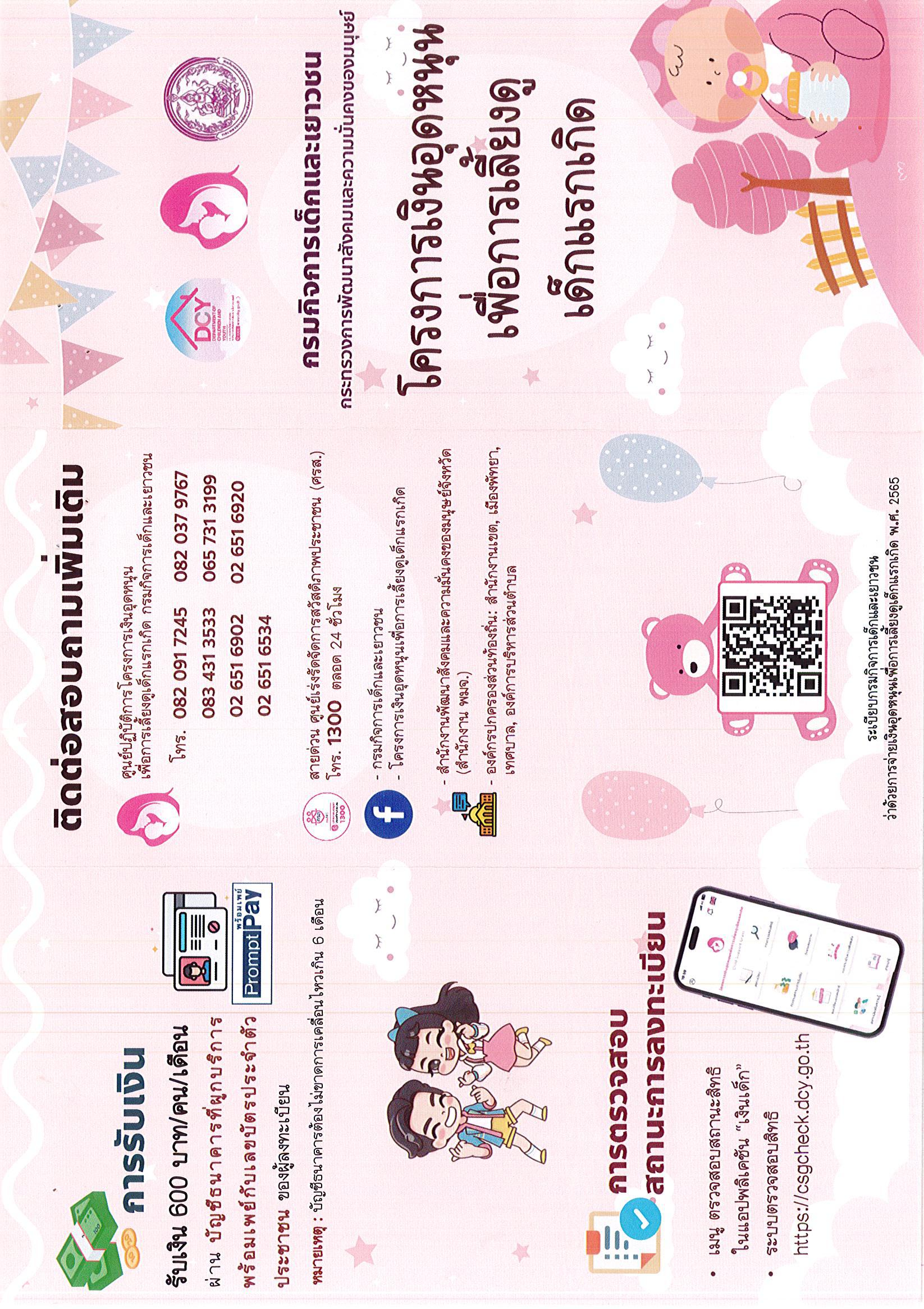 ข่าวประชาสัมพันธ์องค์การบริหารส่วนตำบลโพนบก กรมกิจการเด็กและเยาวชนกระทรวงการพัฒนาสังคมและความมั่นคงของมนุษย์ โครงการเงินอุดหนุนเพื่อการเลี้ยงดูเด็กแรกเกิด