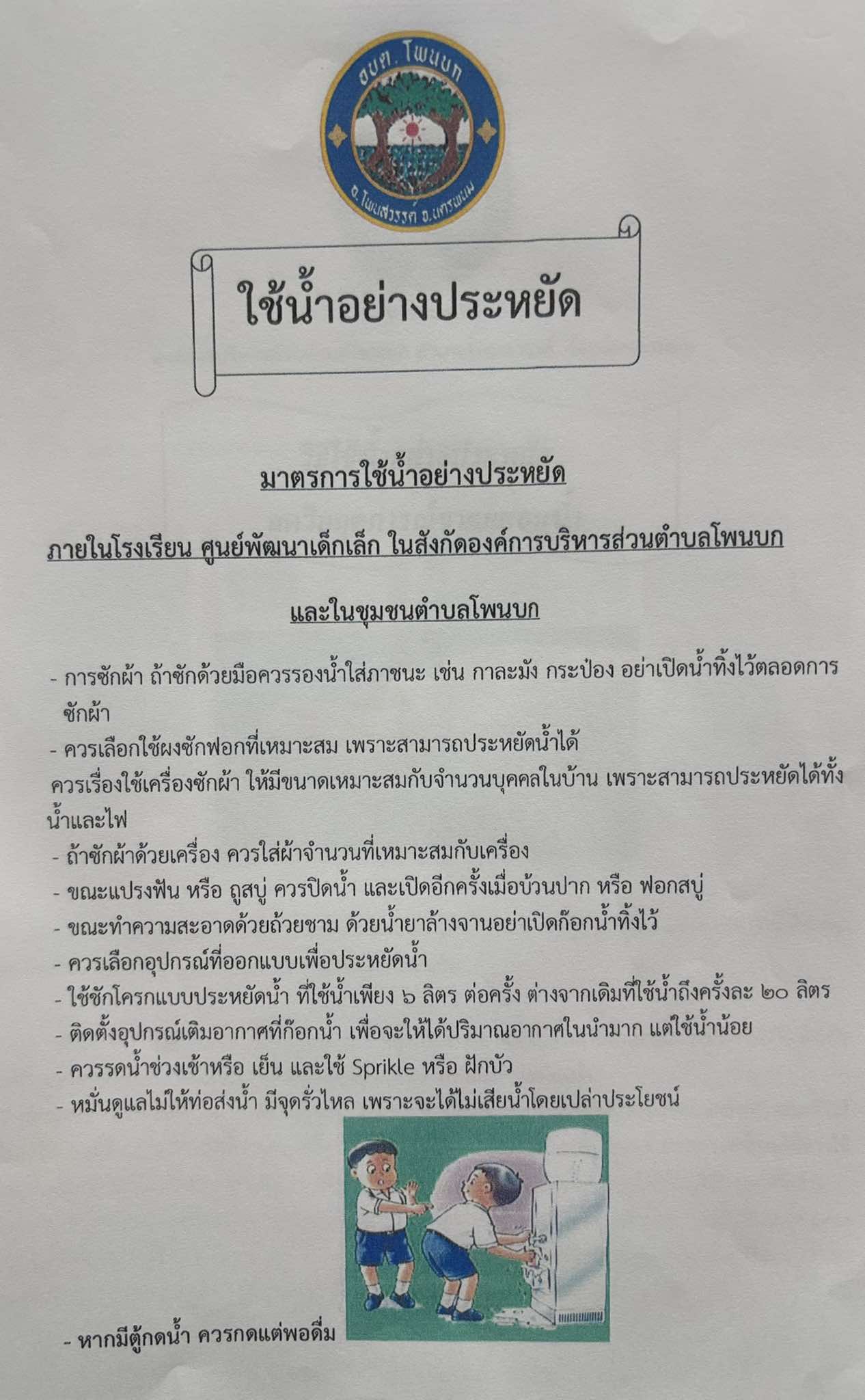 มาตรการใช้น้ำอย่างประหยัดในสังกัดองค์การบริหารส่วนตำบลโพนบก