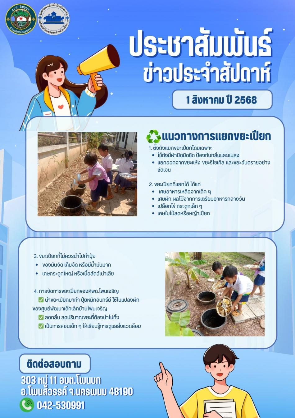 แนวทางการคัดแยกขยะเปียก ของศูนย์พัฒนาเด็กเล็กบ้านโพนเจริญ [1 สิงหาคม 2568]